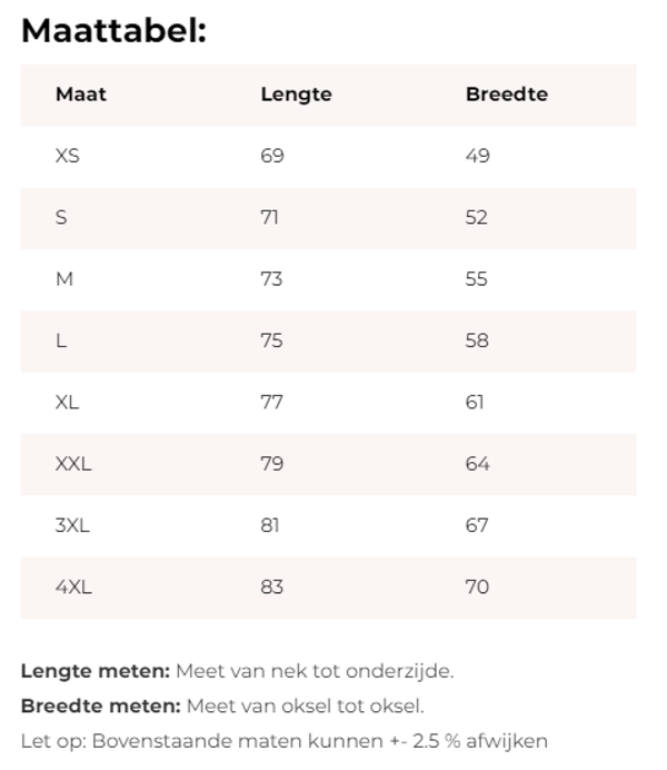 Materiaal: 80% Katoen / 20% Polyester